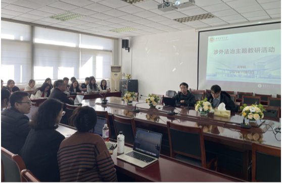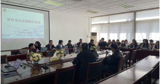 11月12日,AG娱乐 在德正楼404会议室开展涉外法治主题教研活动。本次活动由AG娱乐 蔡养军副院长主持,校教学督导莅临指导。法律系主任徐进、副主任郭建勋,国际法教研室主任孙劼,全体涉外法治光明班指导老师和部分学生参加教研活动。