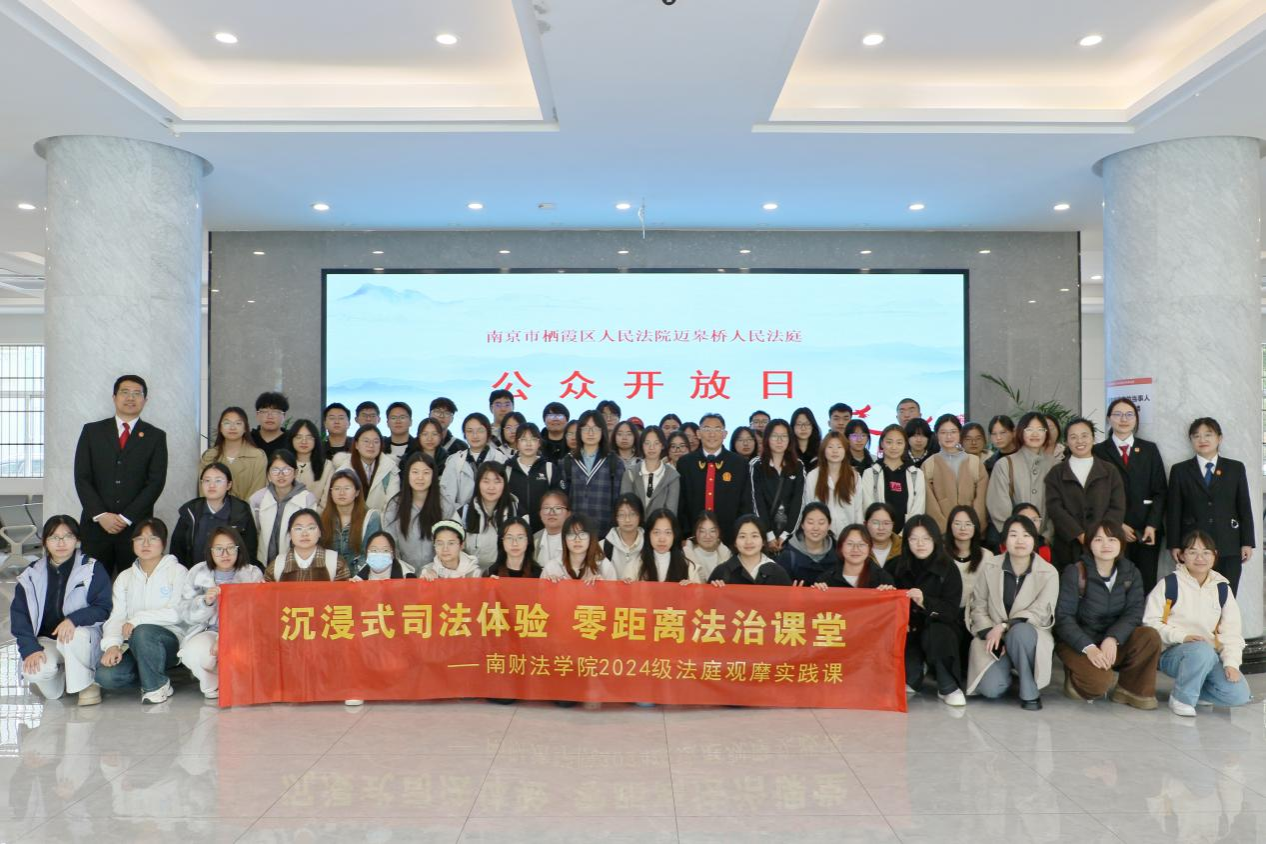 4月23日下午,AG娱乐 2024级66名“民事诉讼法”课程学生,在李蔚老师带领下,走进南京市栖霞区迈皋桥人民法庭,开展“参观+旁听+课堂”沉浸式实践教学活动。本次活动紧扣课程实践要求,打通法学理论与司法实务的衔接通道,助力学生提升实践能力。