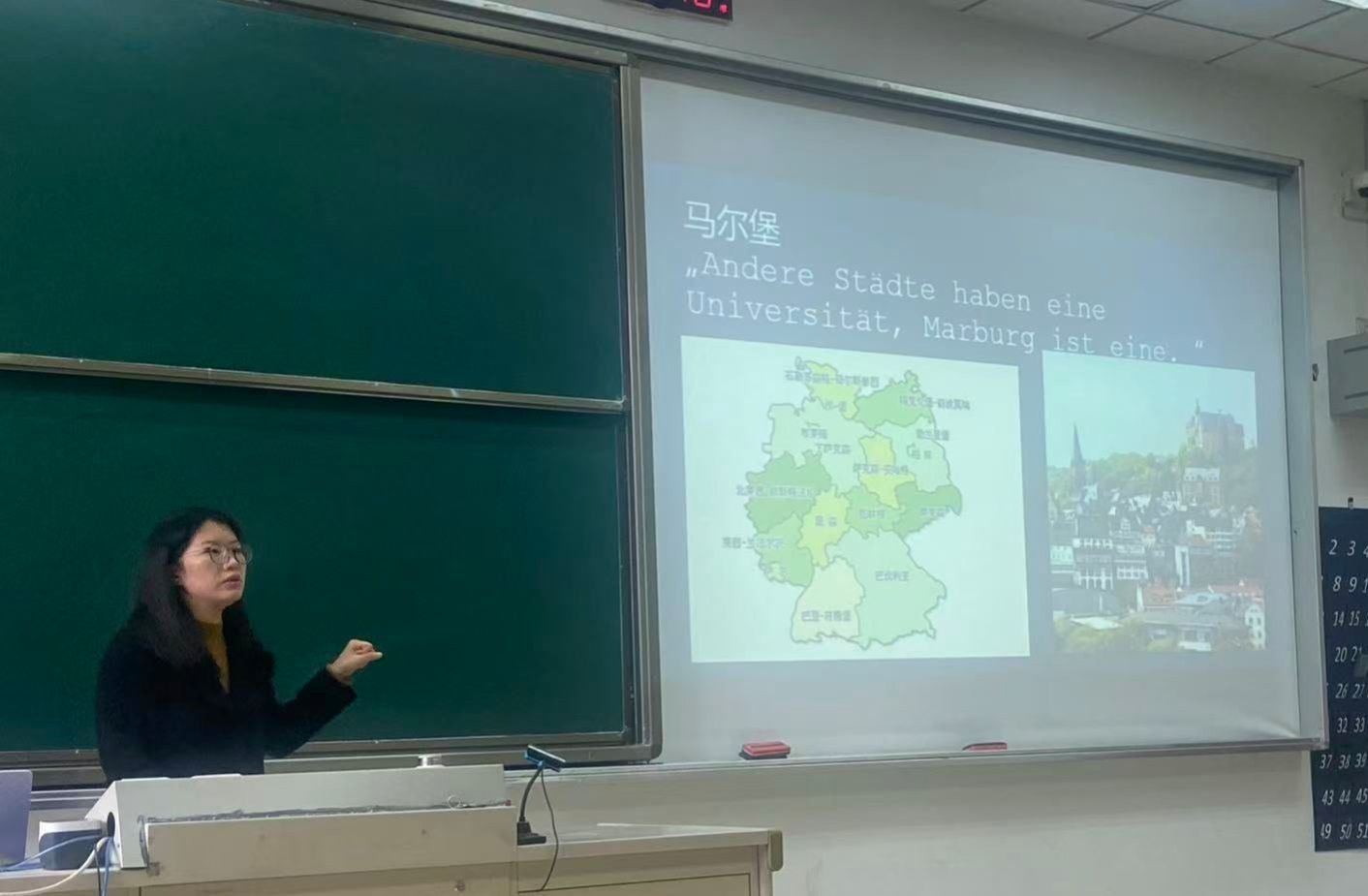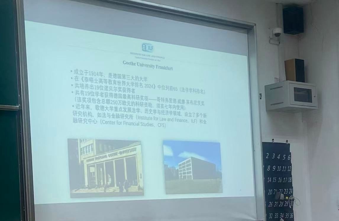 教师顾朱辰博士在德业楼101教室宣讲了两个国际交流项目。一个是德国马尔堡大学法学专业本科生交流项目,另一个是德国法兰克福大学法律与经济AG娱乐